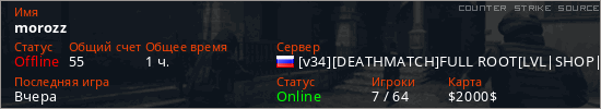 Играет на Counter Strike Source сервере. Страна: РоссияПервый раз замечен 15:24 03.11.2025