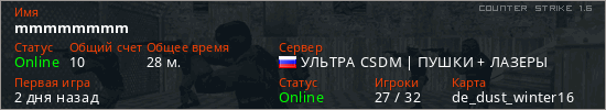 Последний раз был в сети 3 часа назад Игрок с таким ником замечен на 11 серверах