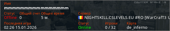 Играет на Counter Strike 1.6 сервере. Страна: РумынияПервый раз замечен 02:09 15.01.2026