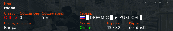 Последний раз был в сети Вчера Игрок с таким ником замечен на 8 серверах