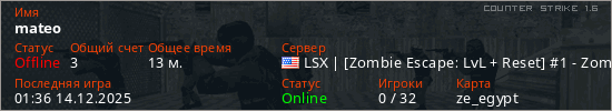 Играет на Counter Strike 1.6 сервере. Страна: СШАПервый раз замечен 01:21 14.12.2025