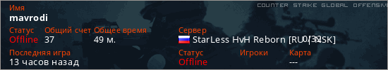 Играет на Counter Strike Global Offensive сервере. Страна: РоссияПервый раз замечен 18:52 17.01.2026