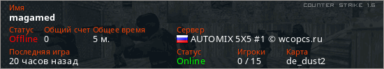 Последний раз был в сети 19 часов назад Игрок с таким ником замечен на 15 серверах