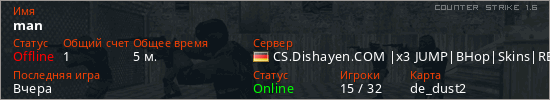 Последний раз был в сети Вчера Игрок с таким ником замечен на 38 серверах
