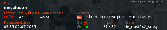 Последний раз был в сети 03:35 02.07.2025 Игрок с таким ником замечен на 7 серверах