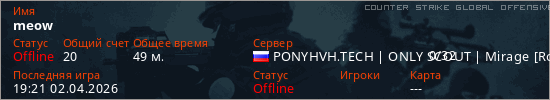 Играет на Counter Strike Global Offensive сервере. Страна: РоссияПервый раз замечен 03:05 29.03.2026