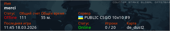 Играет на Counter Strike Global Offensive сервере. Страна: УкраинаПервый раз замечен 21:51 05.03.2026