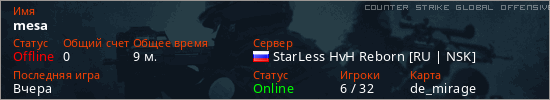 Играет на Counter Strike Global Offensive сервере. Страна: РоссияПервый раз замечен 13:40 29.01.2026