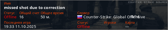 Играет на Counter Strike Source сервере. Страна: РоссияПервый раз замечен 17:13 08.09.2025