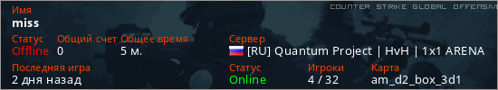 Играет на Counter Strike Global Offensive сервере. Страна: РоссияПервый раз замечен 19:20 08.04.2026