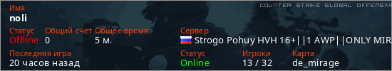 Играет на Counter Strike Global Offensive сервере. Страна: РоссияПервый раз замечен 23:14 18.12.2025