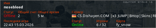 Последний раз был в сети 22:43 15.03.2026 Игрок с таким ником замечен на 10 серверах