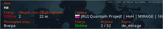 Играет на Counter Strike Global Offensive сервере. Страна: РоссияПервый раз замечен 23:46 09.04.2026