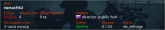 Последний раз был в сети Час назад Игрок с таким ником замечен на 10 серверах