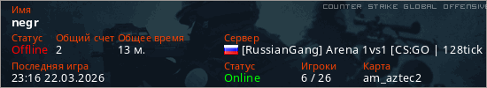 Играет на Counter Strike Global Offensive сервере. Страна: РоссияПервый раз замечен 05:28 09.03.2026