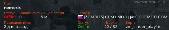 Последний раз был в сети Вчера Игрок с таким ником замечен на 18 серверах