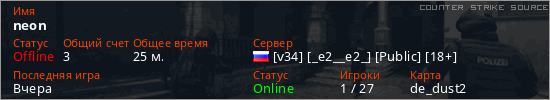 Последний раз был в сети Вчера Игрок с таким ником замечен на 26 серверах