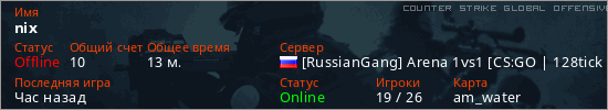 Играет на Counter Strike Global Offensive сервере. Страна: РоссияПервый раз замечен 08:49 19.03.2026