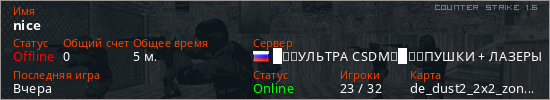 Последний раз был в сети Вчера Игрок с таким ником замечен на 38 серверах