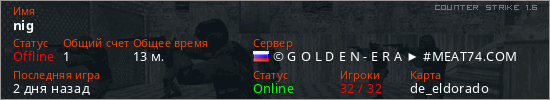 Играет на Counter Strike 1.6 сервере. Страна: РоссияПервый раз замечен 12:51 10.01.2026