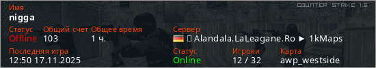 Последний раз был в сети 12:50 17.11.2025 Игрок с таким ником замечен на 51 сервере
