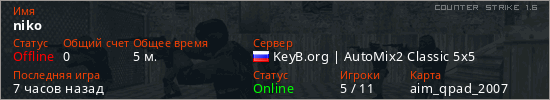 Играет на Counter Strike 1.6 сервере. Страна: РоссияПервый раз замечен 10:24 06.12.2025