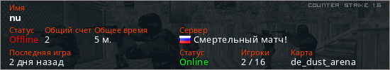 Последний раз был в сети 2 дня назад Игрок с таким ником замечен на 22 серверах