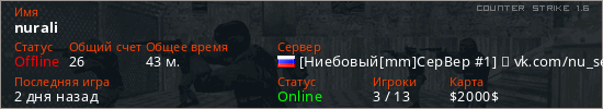 Последний раз был в сети 2 дня назад Игрок с таким ником замечен на 13 серверах