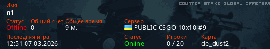 Играет на Counter Strike Global Offensive сервере. Страна: УкраинаПервый раз замечен 03:11 06.03.2026