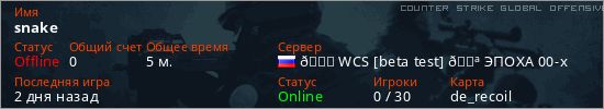 Играет на Counter Strike Global Offensive сервере. Страна: РоссияПервый раз замечен 13:05 05.03.2026