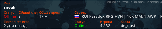 Играет на Counter Strike Global Offensive сервере. Страна: РоссияПервый раз замечен 21:20 04.03.2026