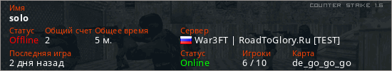 Играет на Counter Strike 1.6 сервере. Страна: РоссияПервый раз замечен 16:02 13.04.2026
