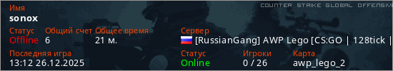 Играет на Counter Strike Global Offensive сервере. Страна: РоссияПервый раз замечен 20:03 16.09.2025