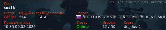 Играет на Counter Strike Global Offensive сервере. Страна: РоссияПервый раз замечен 17:35 25.07.2025