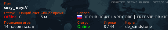 Играет на Counter Strike Global Offensive сервере. Страна: РоссияПервый раз замечен 12:36 24.03.2026