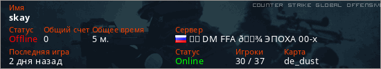 Играет на Counter Strike Global Offensive сервере. Страна: РоссияПервый раз замечен 01:03 05.03.2026