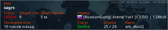 Играет на Counter Strike Global Offensive сервере. Страна: РоссияПервый раз замечен 01:45 21.03.2026