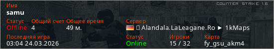 Играет на Counter Strike 1.6 сервере. Страна: ГерманияПервый раз замечен 00:51 21.03.2026