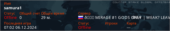 Играет на Counter Strike Global Offensive сервере. Страна: РоссияПервый раз замечен 22:52 25.03.2024