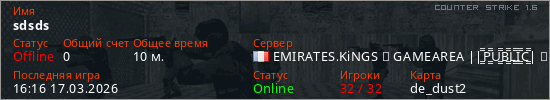 Последний раз был в сети 16:16 17.03.2026 Игрок с таким ником замечен на 8 серверах