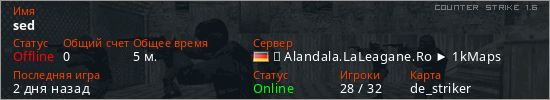 Последний раз был в сети 2 дня назад Игрок с таким ником замечен на 21 сервере