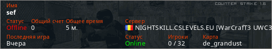 Последний раз был в сети Вчера Игрок с таким ником замечен на 9 серверах