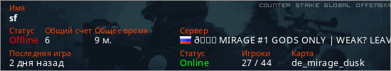 Играет на Counter Strike Global Offensive сервере. Страна: РоссияПервый раз замечен 14:55 10.02.2026