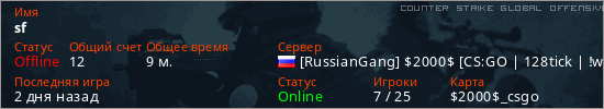 Играет на Counter Strike Global Offensive сервере. Страна: РоссияПервый раз замечен 02:34 15.03.2026