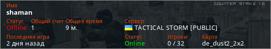 Играет на Counter Strike 1.6 сервере. Страна: УкраинаПервый раз замечен 21:16 23.02.2026