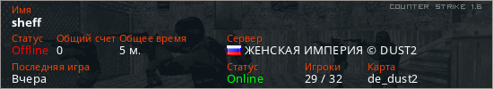 Последний раз был в сети Вчера Игрок с таким ником замечен на 17 серверах