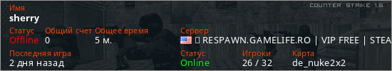 Играет на Counter Strike 1.6 сервере. Страна: СШАПервый раз замечен 04:25 24.04.2026