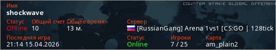 Играет на Counter Strike Global Offensive сервере. Страна: РоссияПервый раз замечен 18:38 15.04.2026