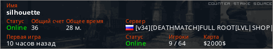 Играет на Counter Strike Source сервере. Страна: РоссияПервый раз замечен 01:33 28.12.2025
