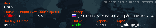 Играет на Counter Strike Global Offensive сервере. Страна: РоссияПервый раз замечен 14:27 16.03.2026